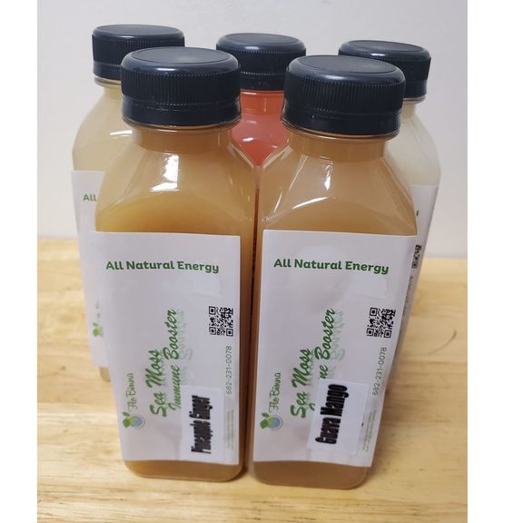 Sea moss juice blended with a variety of fruit flavors including; mango, apple + peach, lemonade, pineapple, and more.